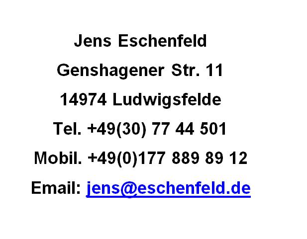 Diese Homepage dient nur zum Emailkontakt. Telefonisch bin ich unter den oben genannten Telefonnummern zu erreichen.